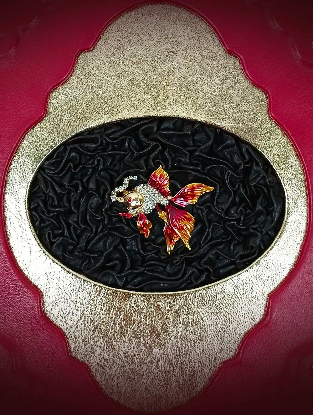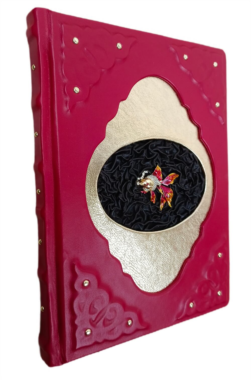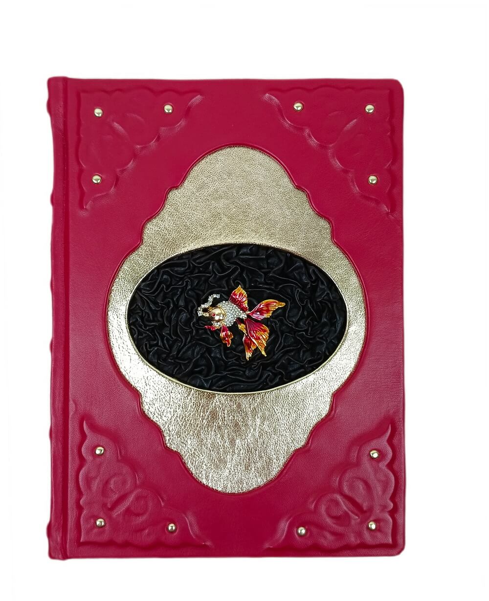 Для переплета использована красная натуральная кожа, в центре – декоративная накладка в виде Золотой рыбки на фрагменте натуральной кожи. Отличный подарок для детей и взрослых.