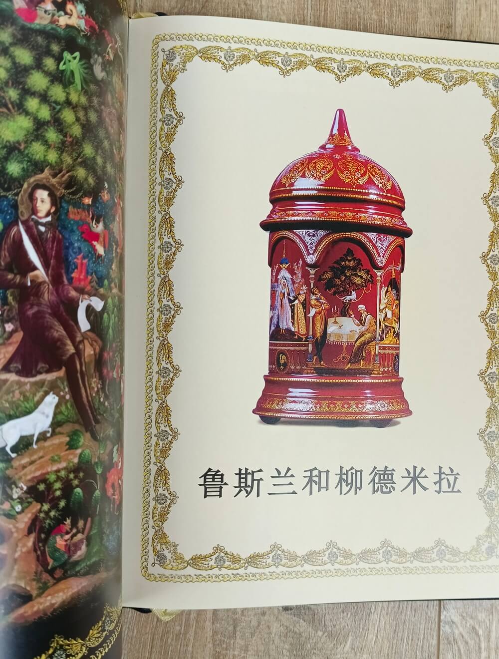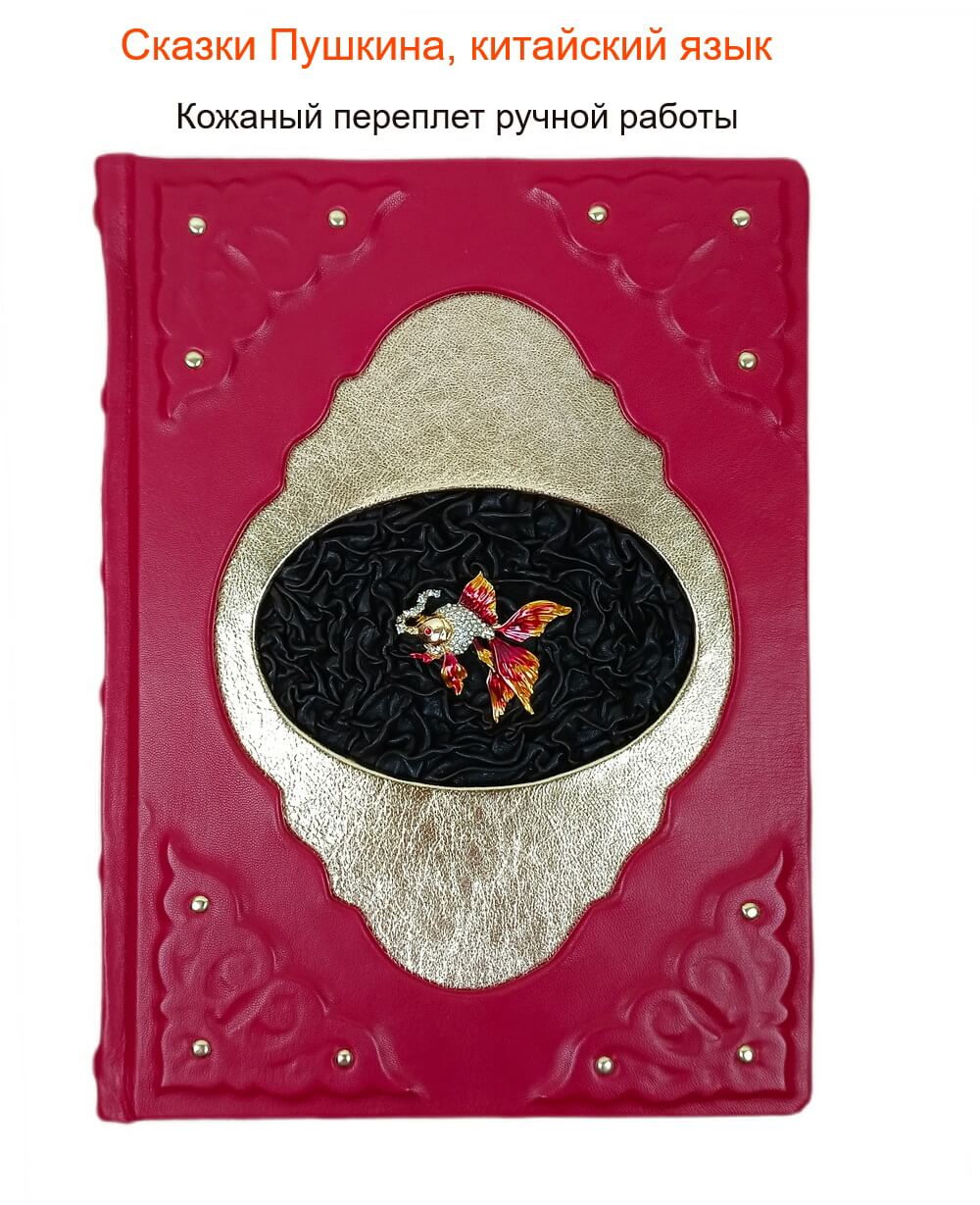 “Сказки Пушкина” на китайском языке в кожаном переплете от мастерской LIKOR. Красивое издание на мелованной бумаге с массой иллюстраций со сказками Пушкина. В альбом – книгу включены сказки А. С. Пушкина: “Руслан и Людмила”, “Сказка о царе Салтане”, “Сказка о мёртвой царевне и о семи богатырях”, “Сказка о золотом петушке”, “Сказка о попе и о работнике его Балде” и “Сказка о рыбаке и рыбке”, переведенные на китайский язык.